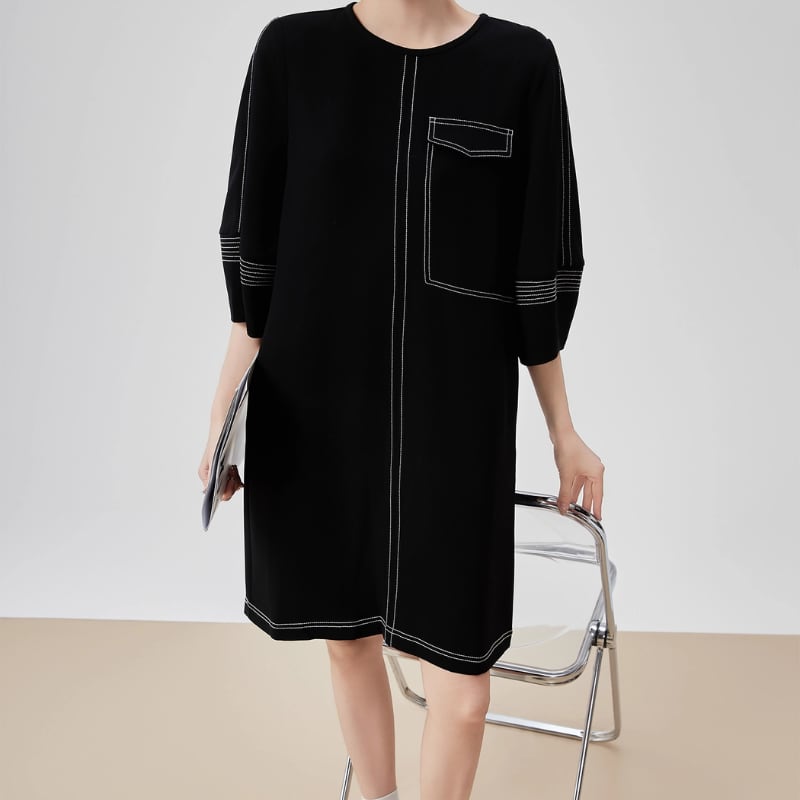 洗練された大人のための、ステッチアクセントドレス。