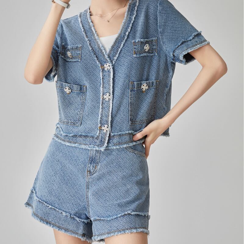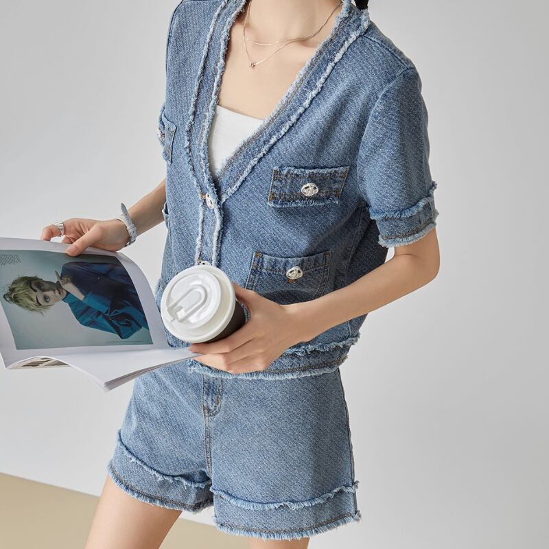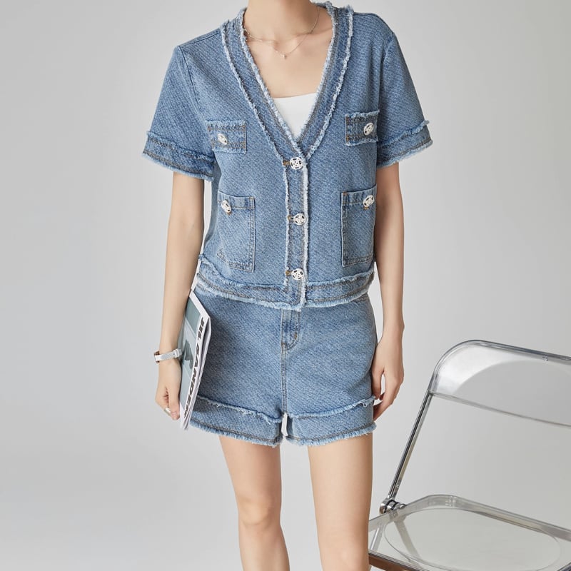 一枚で旬顔!フリンジがアクセントのデニムセットアップ。