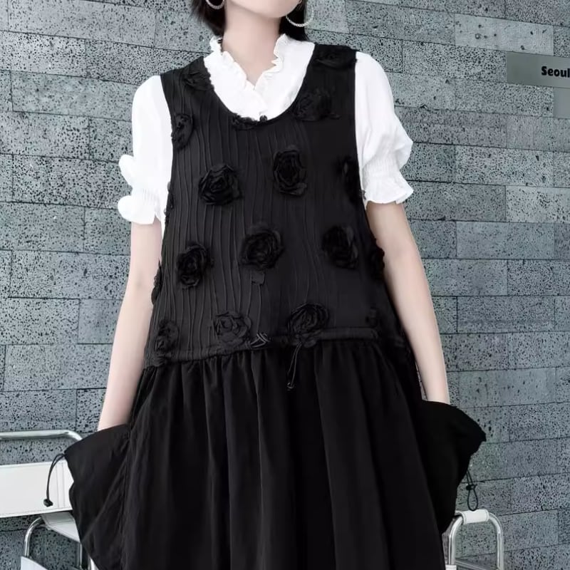 立体的な花モチーフが、着るだけで特別な存在感を放つワンピース。