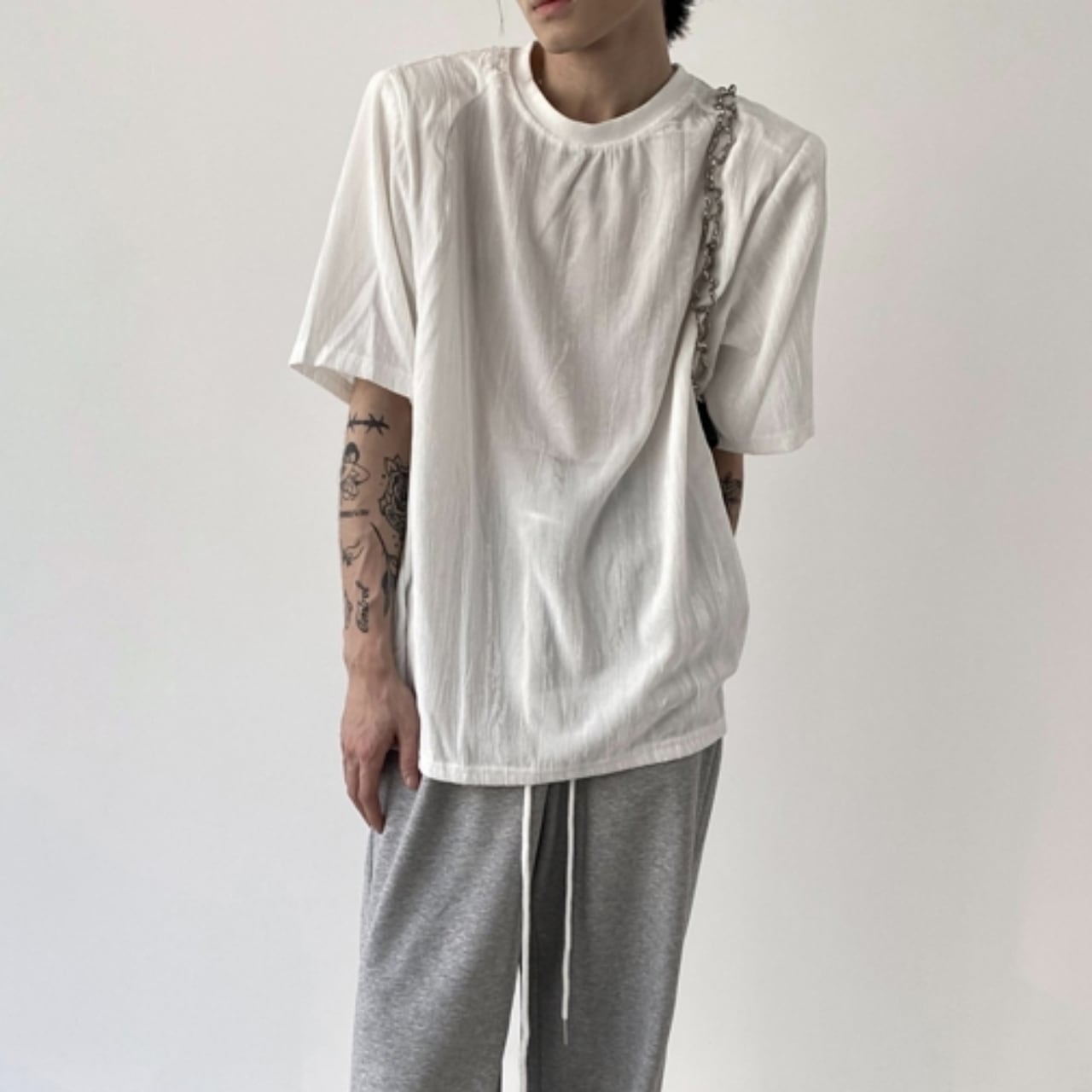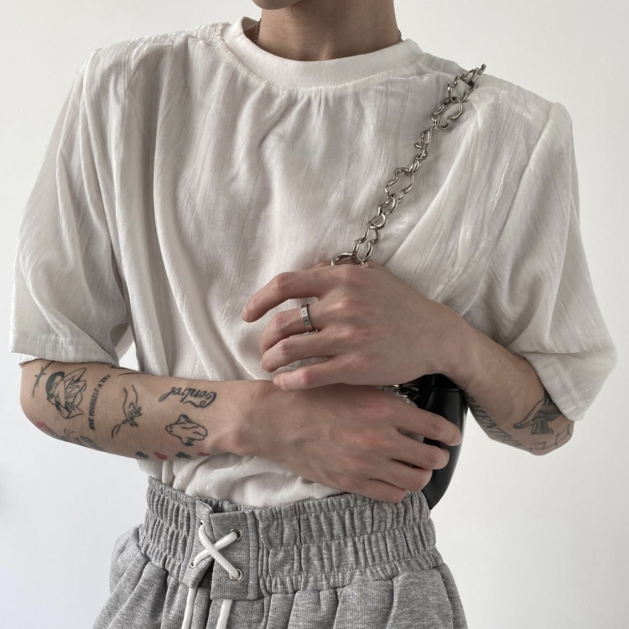 ベルベットのような光沢感あるハーフスリーブトップス。