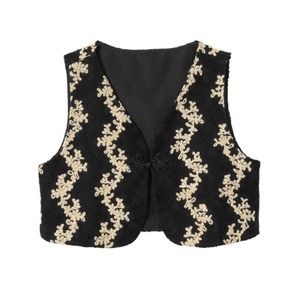 レトロ柄刺繍のショートベスト。