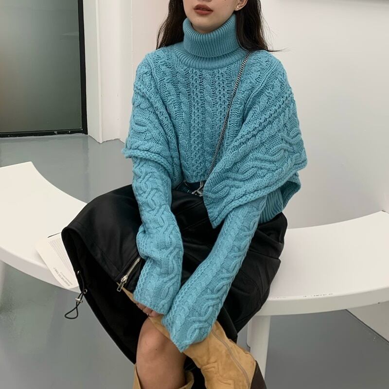 ケープデザインが可愛いハイネックニットトップス。