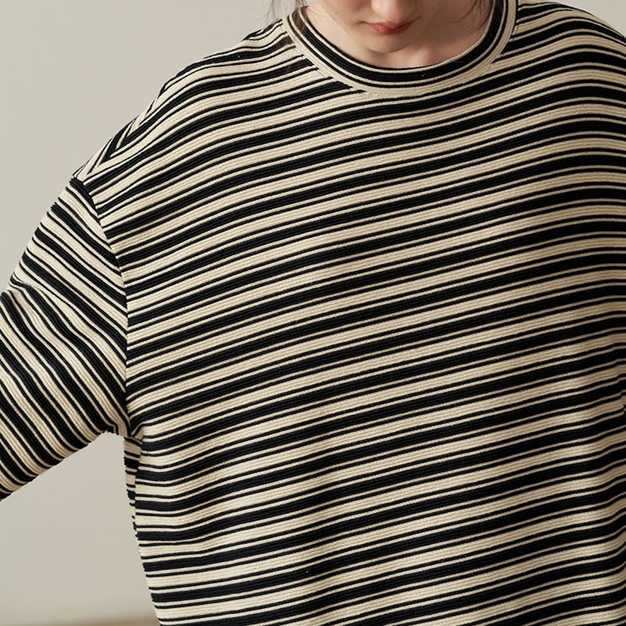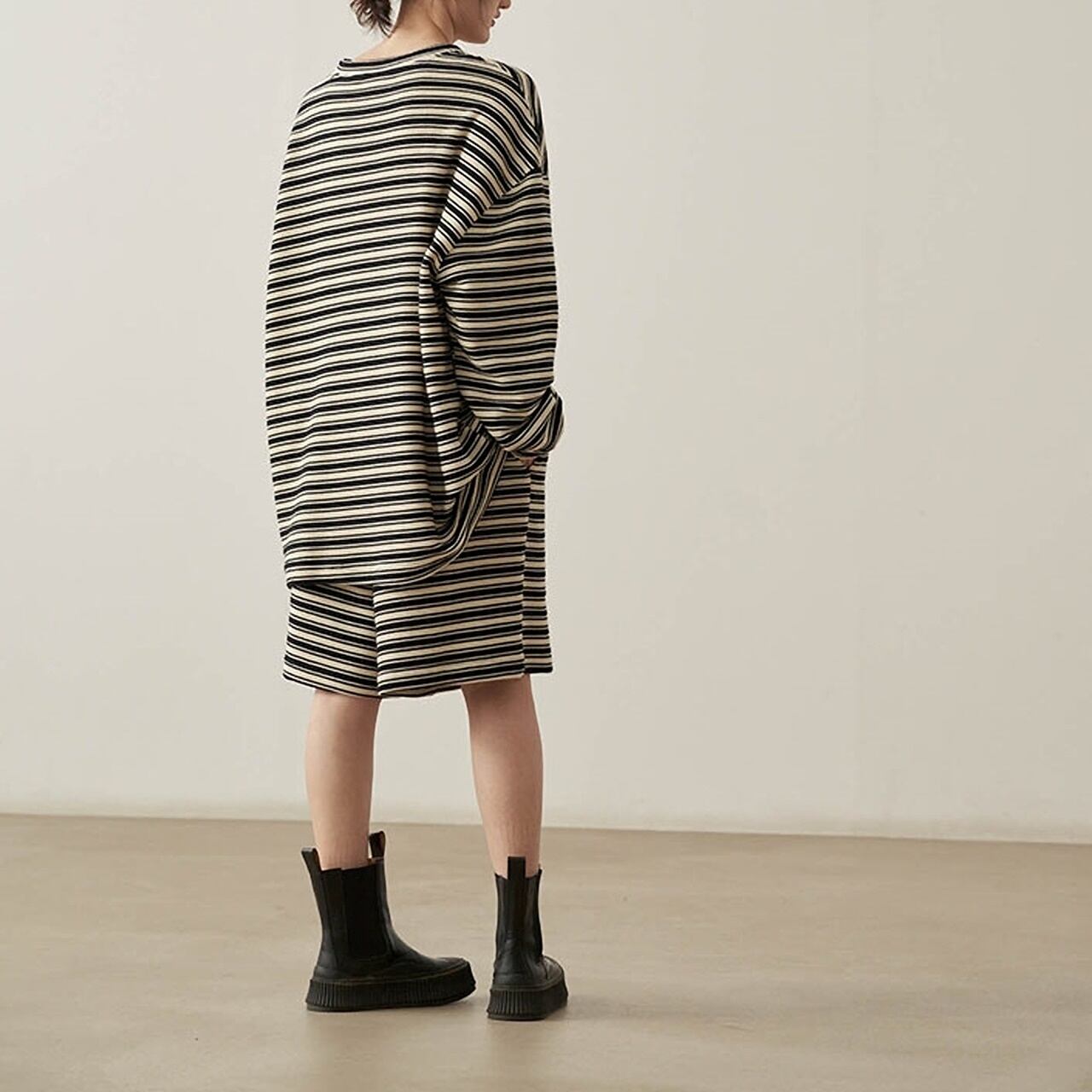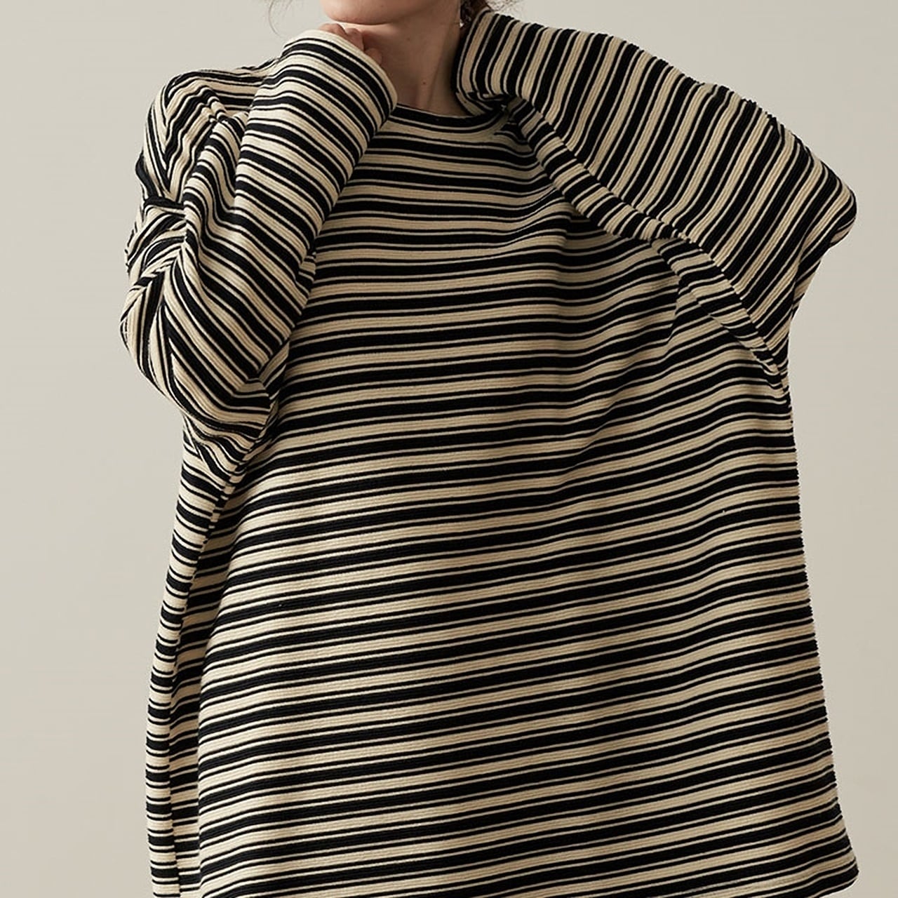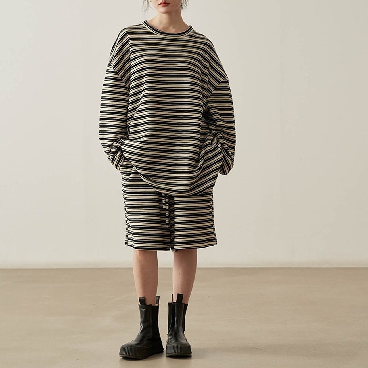 ルーズなシルエットでカジュアルに着られるボーダー柄セットアップ。