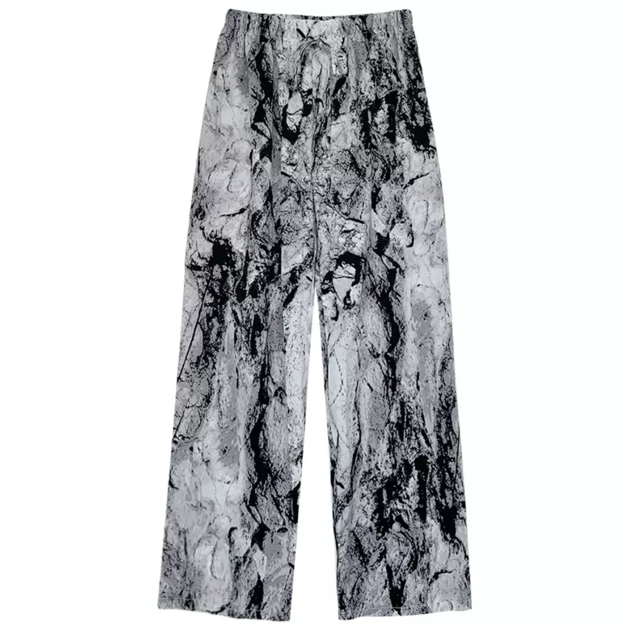 水墨画のような美しいマーブル模様のワイドパンツ。