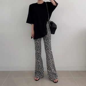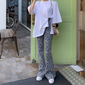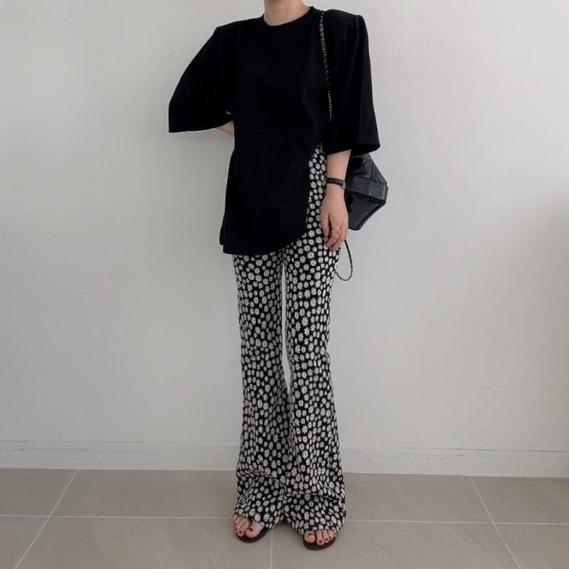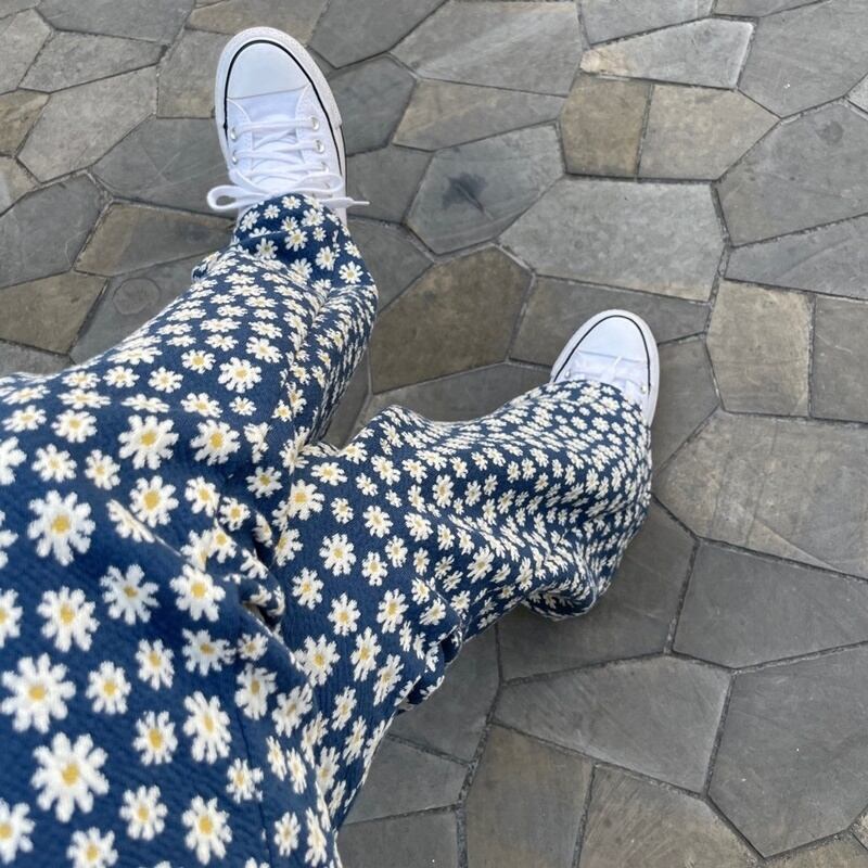 マーガレット柄がとてもかわいらしいフレアパンツ。