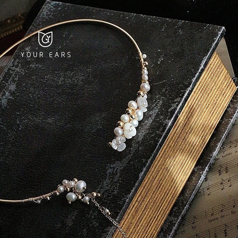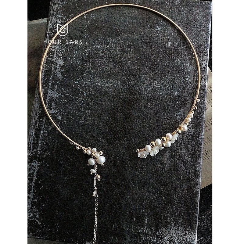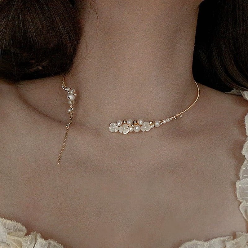天然パール&貝殻で装飾された上品なチョーカー。