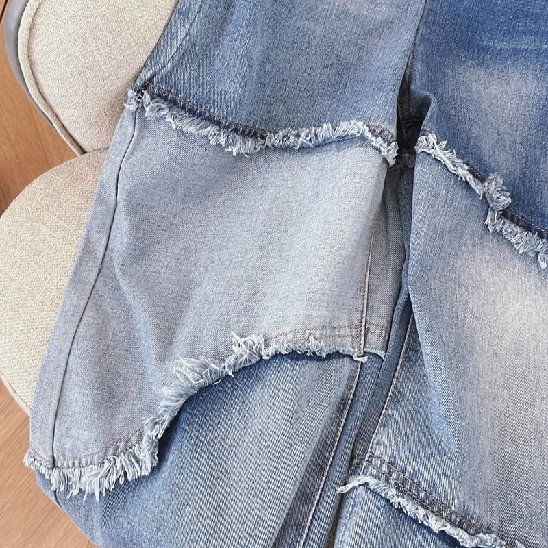 フリンジデザインが個性的でおしゃれなデニムジーンズ。